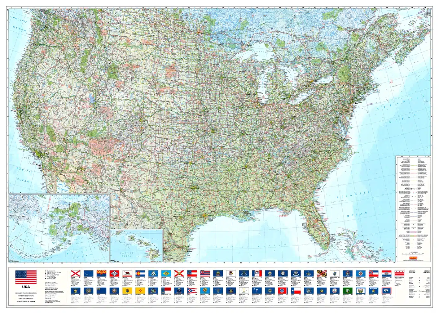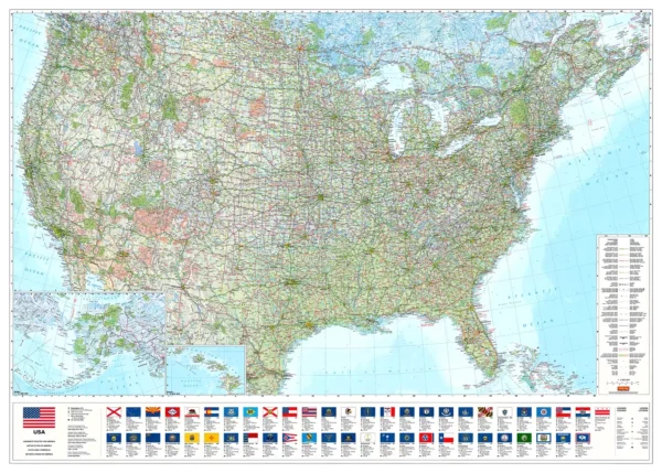 Die Landkarte Vereinigte Staaten von Amerika von Hallwag ist der zuverlässige Begleiter für alle, die dieses riesige Land erkunden möchten. Diese hochwertige, doppelseitige Karte bietet einen klaren und aktuellen Überblick über die gesamten Vereinigten Staaten, einschließlich der Bundesstaaten, Großstädte, Nationalparks und wichtigen Autobahnen. Die Karte ist mit viel Liebe zum Detail gestaltet: Aufgrund ihres Maßstabs sind auch kleinere Städte und weniger bekannte Routen sichtbar, so dass Sie bei der Planung Ihrer Reise viel Auswahl haben.